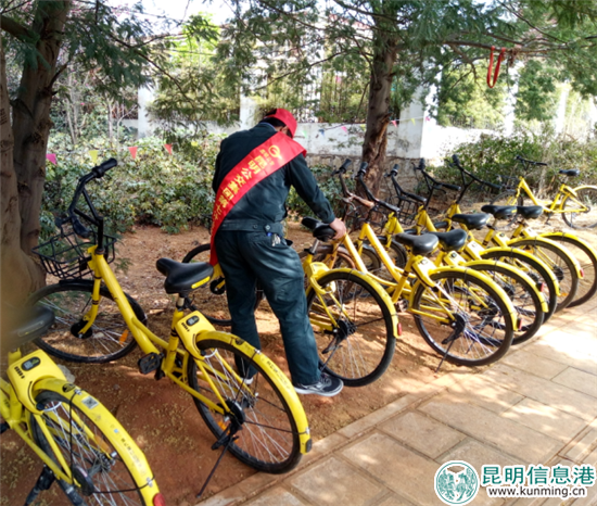 昆明信息港訊 記者李金梓 通訊員劉穎 楊偉 近日,昆明公交第七公司三十八車隊(duì)組織車隊(duì)青年志愿者對亂停亂放的共享單車進(jìn)行整理、統(tǒng)一擺放,同時(shí)積極引導(dǎo)市民文明出行。