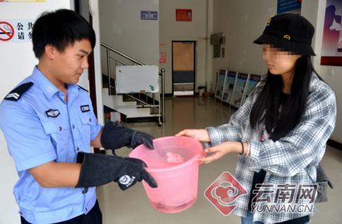 5月22日上午9時(shí)許,一名熱心群眾主動(dòng)將一桶“小娃娃魚(yú)”(當(dāng)?shù)厮追Q(chēng))送到云南省普洱市墨江縣森林公安局,要求民警給予救助。經(jīng)了解,這10只小精靈是國(guó)家二級(jí)保護(hù)動(dòng)物紅瘰疣螈,目前已被當(dāng)?shù)厣止卜派?br/>