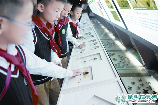 圖為小朋友通過蜻蜓展了解更多有趣的知識。記者趙偉/攝