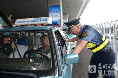昆明信息港訊(昆明日報 記者王姍 攝影記者杜文蕾)5月23日,昆明市出租汽車管理局聯(lián)合機(jī)場公安局、機(jī)場交通運(yùn)輸部等多部門對機(jī)場及周圍的營運(yùn)車輛開展集中整治行動,執(zhí)法人員當(dāng)場對非法運(yùn)營車輛進(jìn)行檢查和處置。
