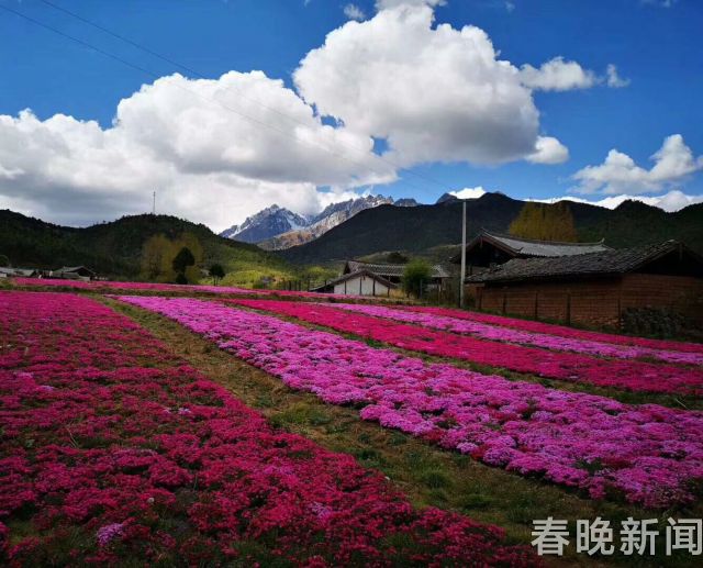 近日,位于玉龍雪山背后的小山村“文?!钡闹鸦ㄓ瓉砹俗蠲赖氖⒒ㄆ?一路奔向玉龍雪山的方向,翻過壩子周邊的那座山,一片芝櫻守著雪山、農(nóng)舍和那幾匹草地間悠閑自得的馬,靜靜開放。