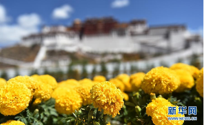 5月24日拍攝的布達拉宮腳下的鮮花。入夏以來,拉薩空氣潔凈,氣候宜人。 新華社記者 覺果 攝