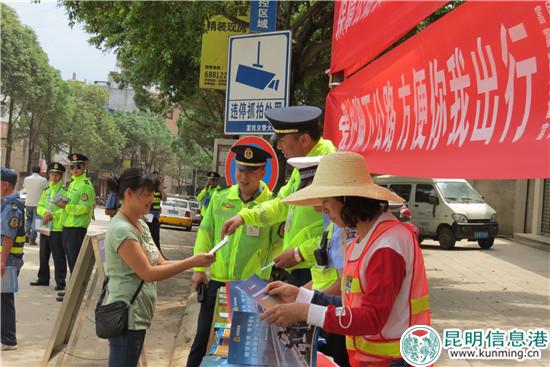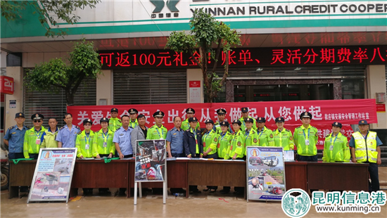 昆明信息港訊 5月23日,昆明公路路政管理二大隊(duì)全體路政隊(duì)員和支隊(duì)相關(guān)業(yè)務(wù)科室人員,聯(lián)合富民縣款莊鎮(zhèn)政府、富民交警大隊(duì)、款莊鎮(zhèn)派出所、款莊公路管理所、款莊鎮(zhèn)交通安全管理工作站、共青團(tuán)款莊鎮(zhèn)團(tuán)委等多家單位,在轎子山旅游專(zhuān)線(xiàn)沿線(xiàn)款莊鎮(zhèn)共同開(kāi)展“路政宣傳月”集中宣傳活動(dòng)。
