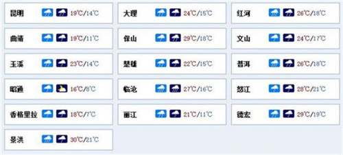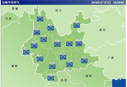 27日20時-28日20時: 普洱、西雙版納、玉溪南部、紅河南部陰有中到大雨局部暴雨;怒江、大理西部、保山、德宏、臨滄陰有小到中雨局部大雨;昭通、曲靖北部多云;其它地區(qū)多云有陣雨。