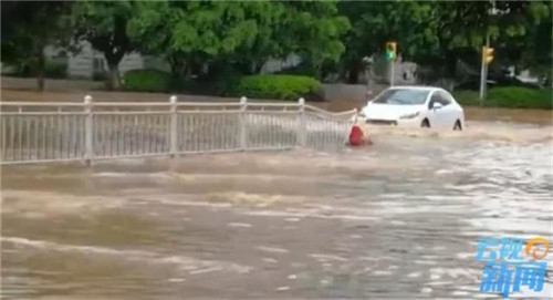大雨過后,縣城的多個路段都出現(xiàn)了大面積的積水,車輛在水中行駛時,濺出兩米多遠的水花。