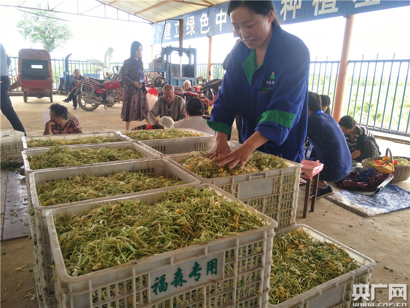 “在季節(jié)性用工高峰日用工均在1萬人以上,我們中午管飯,而且管住、管接送?!被匾晃还ぷ魅藛T告訴央廣網(wǎng)記者,這些村民采摘下來的金銀花經(jīng)過烘干,分揀等多道工序后,最終被加工成一種具有保健功能的清熱解毒的中藥材。