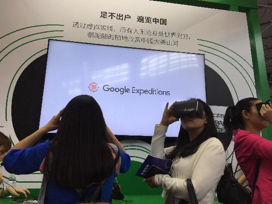 年輕人在感受VR虛擬旅行