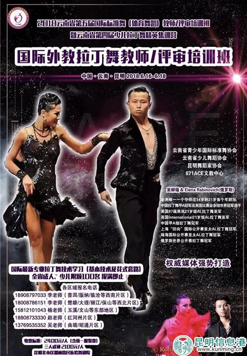 昆明信息港訊 記者甘凌菲 6月16日至18日端午節(jié)期間,2018年云南省第五屆國際標(biāo)準(zhǔn)舞(拉丁舞)教師、評審培訓(xùn)班暨第四屆青少年拉丁舞大師集訓(xùn)營將在昆開班,特邀教師亞洲甲A頭號種子選手吳柳福現(xiàn)場授課,帶領(lǐng)舞者HIGH翻云南拉丁圈。