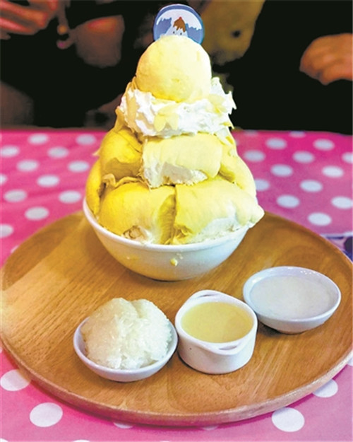有一家餐廳出品的招牌榴蓮冰山從視覺上就已經(jīng)讓人覺得相當特別,超大的榴蓮肉堆成了一座榴蓮山,頂部淋上冰激凌,再加上椰奶或煉乳,吃下去口感豐富,舌尖品嘗到各種甜蜜滋味之后,還能感受濃濃的榴蓮味,相當過癮。(廣州日報 全媒體記者陳薇薇)