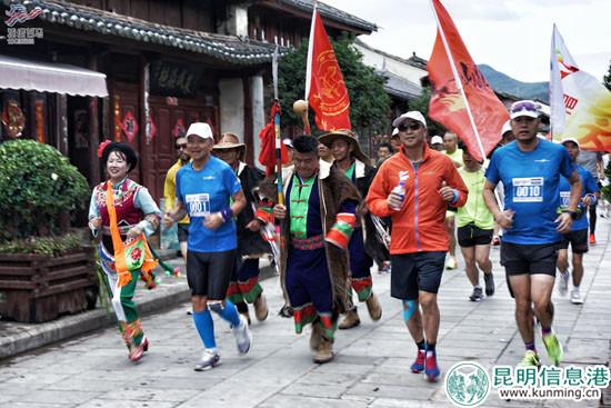 金飛豹帶領(lǐng)眾跑者穿過巍山古城。
