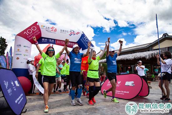昆明信息港訊 實(shí)習(xí)記者楊濘卉 6月4日,“七彩云南·秘境百馬”在大理巍山迎來第十七站分站賽事。2016中國馬拉松年度人物李小白、陶瓷跑者藝術(shù)家李淳、2017第二輪世界馬拉松六大滿貫賽事完成者邱小斌、馬拉松運(yùn)動(dòng)達(dá)人張承參與領(lǐng)跑;同時(shí)來自巍山、祥云等地的160多位跑友來到現(xiàn)場(chǎng)為金飛豹助跑。