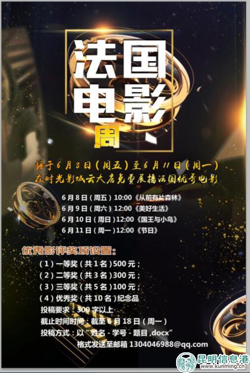 昆明信息港訊 記者蘇雯芊 6月8日,“2018年云南-法國文化周”系列活動(dòng)“法國電影周”在云南大學(xué)呈貢校區(qū)正式啟幕,四部法國優(yōu)秀電影將8日至11日,在時(shí)光影城云大店免費(fèi)展播。