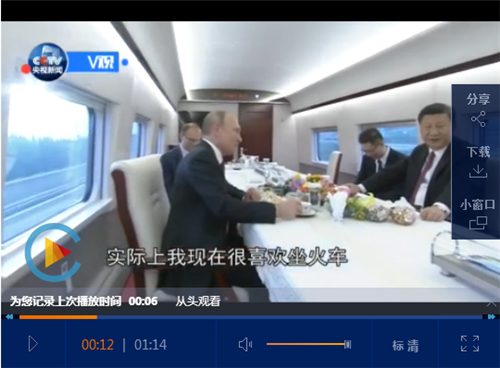 在高鐵上,習(xí)近平向普京介紹了高鐵的時速、規(guī)劃等情況,普京表示坐火車有種浪漫的感覺。