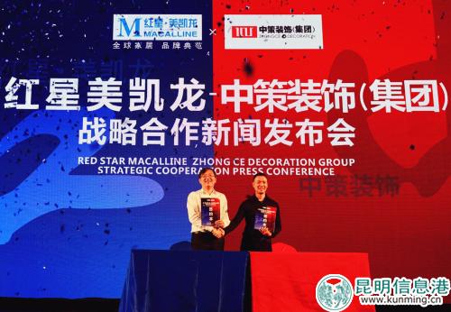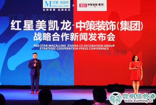 昆明信息港訊 記者邵元麗 6月8日,紅星美凱龍和中策裝飾(集團(tuán))在昆明洲際酒店舉行戰(zhàn)略合作新聞發(fā)布會。雙方的合作標(biāo)志著將為更多云南用戶提供更高品質(zhì)的產(chǎn)品與服務(wù)。