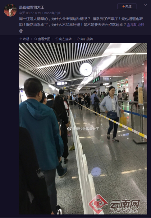 針對(duì)此事,11日下午,昆明軌道交通集團(tuán)有限公司對(duì)外發(fā)布通報(bào)稱,6月11日早,由于地鐵安檢加強(qiáng),加之降雨原因,乘客比平時(shí)增多,導(dǎo)致車站高峰時(shí)段進(jìn)站客流排隊(duì)較長(zhǎng)。其中司家營(yíng)、羊腸村、星耀路等多個(gè)車站乘客進(jìn)站隊(duì)伍過(guò)長(zhǎng),車站已安排保安、車站人員盡力配合引導(dǎo)。