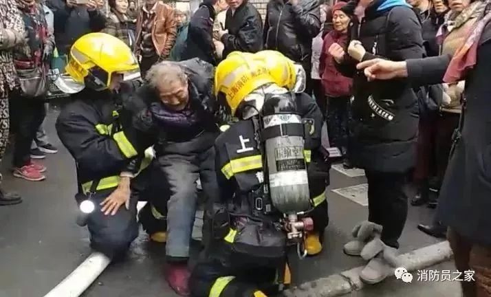 1月5日中午,上海普陀區(qū)一民宅室內(nèi)發(fā)生火災(zāi)。在滅火救援期間,一名90歲高齡的老奶奶被消防員背出火場(chǎng),狂奔大約有400米左右。到了弄堂口,兩名消防員以腿做凳,供老人休息。