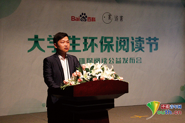 尚曉輝出席大學生環(huán)保閱讀節(jié)暨全民環(huán)保閱讀公益發(fā)布會并講話。中國青年網(wǎng)記者 劉喆 攝