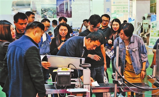 全自動(dòng)月餅生產(chǎn)線、智慧型伺服包裝機(jī)、全屋互聯(lián)網(wǎng)家電、數(shù)字噴印設(shè)備……伴隨著“噠噠”的機(jī)械聲,記者走進(jìn)機(jī)電館,被各種智能裝備和設(shè)計(jì)所吸引。