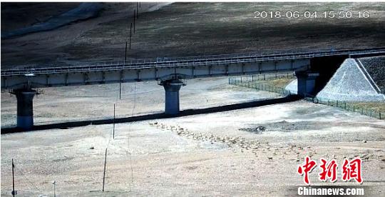 “我們通過觀測,藏羚羊群逐漸匯集在青藏公路與青藏鐵路之間的區(qū)域內,尋找機會通過青藏鐵路五道梁北大橋,生性機敏的藏羚羊多次試探通過,經過2-3小時的觀察、徘徊,藏羚羊群終于在頭羊的帶領下,邁開了步伐,姿態(tài)輕盈,快速地從青藏鐵路五道梁北大橋第三、第四橋洞下完成了此次穿越?!鼻嗪J…h(huán)境信息中心工作人員說。