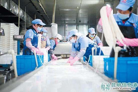 昆明信息港訊(昆明日報(bào) 記者蔣卓成)走在昆明的大街小巷,各式各樣的米線館子多不勝數(shù)。不論是早餐、午餐還是晚餐,甚至是夜間的宵夜,米線都能在昆明市民的菜單食譜里占有一席之地,而這種濃厚的飲食文化,也為昆明米線市場的發(fā)展提供了天然的土壤。然而,長期以來昆明米線行業(yè)一直面臨生產(chǎn)分散、經(jīng)營分散的局面,不但給食品安全監(jiān)管帶來難度,同時也限制著云南米線“走出去”的步伐。隨著時間的推移,布局產(chǎn)業(yè)鏈、進(jìn)行標(biāo)準(zhǔn)化經(jīng)營的米線生產(chǎn)企業(yè)也越來越多,昆明的米線行業(yè)迎來了新的發(fā)展機(jī)遇。