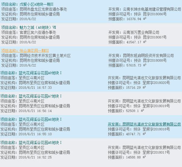 據(jù)昆明市房產(chǎn)信息網(wǎng)的數(shù)據(jù)統(tǒng)計,上周昆明主城有中建龍熙壹號、萬科魅力之城、東旭御山湖3個樓盤取得預售證,獲批房源11.55萬方。呈貢有藍關滇池花田國際度假區(qū)1個樓盤取證,新增供應了11.55萬方。上周,昆明獲批房源共計24.71萬方。和此前一周新增房源面積56.8萬方相比,上周獲批房源環(huán)比腰斬,出現(xiàn)巨幅回落趨勢。