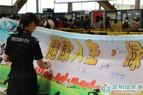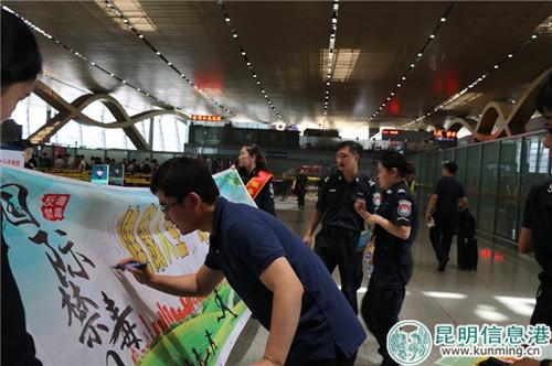 昆明信息港訊 記者上官艷君 6月26日,昆明機場迎來了第31個國際禁毒日。為了提升廣大旅客、員工對毒品危害的認識,增強抵御毒品能力,營造濃厚的禁毒宣傳氛圍,昆明機場聯(lián)合云南省公安廳民用機場公安局,在航站樓開展了形式多樣、主題鮮明的“6.26”國際禁毒日系列宣傳活動。