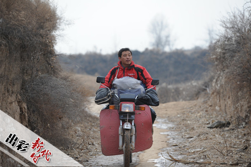 賀星龍騎著摩托車去給鄉(xiāng)親們看病。圖片來源:山西日報