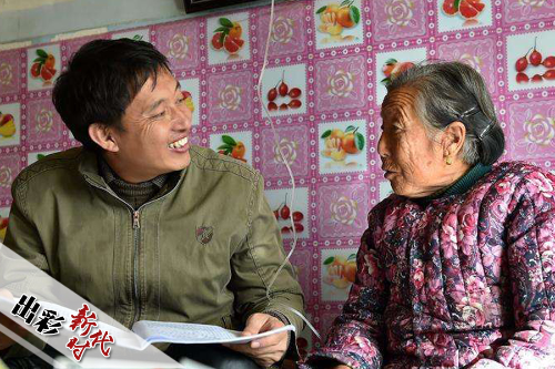 賀星龍在詢問村里老人的健康狀況。圖片來源:新華社