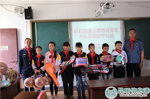 昆明信息港訊 記者昝娟娟 通訊員郭倫 “愛路護(hù)路 人人有責(zé)”,6月27日,昆石高速公路路政管理大隊(duì)在彌勒市阿烏小學(xué)開展“愛路護(hù)路宣傳”及“捐資助學(xué)”活動(dòng),提高廣大師生愛路護(hù)路意識(shí)。