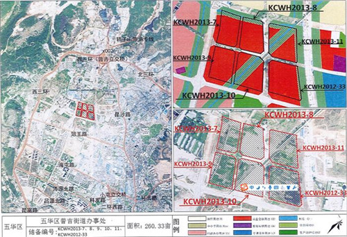 地塊出讓信息顯示,此次拍賣的6宗土地編號(hào)分別為KCWH2012-33、KCWH2013-7、KCWH2013-8、KCWH2013-9、KCWH2013-10、KCWH2013-11號(hào),面積共173468.91㎡(約260.2畝)。土地性質(zhì)為零售商業(yè)、批發(fā)市場(chǎng)、餐飲、旅館、商務(wù)金融、娛樂用地兼容城鎮(zhèn)住宅用地。交易起價(jià)140348.7萬元,起拍樓面價(jià)約1620元/平米,土地單價(jià)約486-648萬元/畝。地塊位于昆明市五華區(qū)普吉街道辦事處,南臨陳家營(yíng)路隅山公園,北臨沙河北路,西臨金川路,東臨京昆高速。