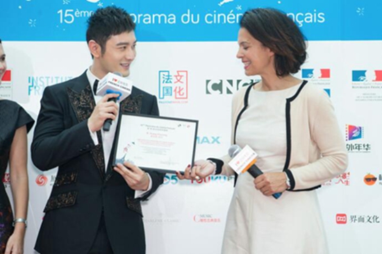 第15屆法國(guó)電影展映舉行開(kāi)幕式,黃曉明以中方形象大使身份亮相。法國(guó)電影展映是中法兩國(guó)文化領(lǐng)域交流的重要平臺(tái),黃曉明成為繼葛優(yōu)、馮小剛、賈樟柯等中國(guó)電影人之后的又一位中方形象大使,積極促進(jìn)中法兩國(guó)電影文化交流。