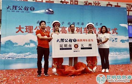 據(jù)悉,7月1日,除“大理公館號”冠名列車外,還有“大理號”和“鉑駿號”共3趟冠名列車同日首發(fā)。