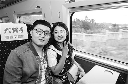 蔡志園、李長澤則是一對93年的夫妻,來自河北唐山,6月30日到昆明原本買了臥鋪火車票前往大理拍婚紗照,聽說開通動車后僅需2小時就能到大理,兩人當(dāng)即線上搶票,趕上了首發(fā)列車。