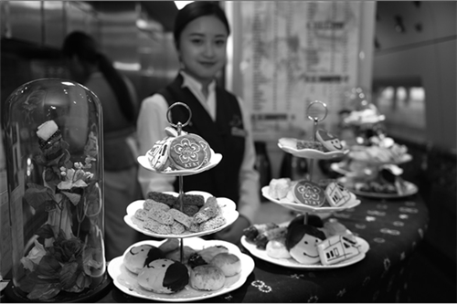 在5號車廂尾部,記者找到了餐飲提供區(qū),工作人員表示旅客可在此選擇購買自己鐘意的食品,主食方面,有全素套餐(28元每盒)、辣子雞套餐 (38元每盒)、滇味辣排套餐(48元每盒)等,還有涼面、泡菜、比薩可供點餐!特色商品方面,記者發(fā)現(xiàn)了牛肝菌、豆末糖、水桶酒等商品的蹤影!