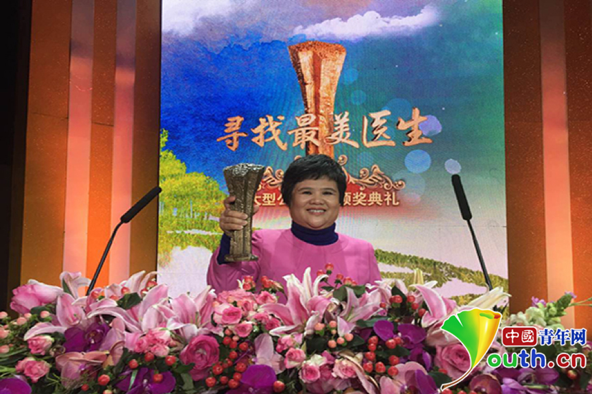 杜麗群在“尋找最美醫(yī)生”頒獎典禮上。廣西南寧市第四人民醫(yī)院供圖