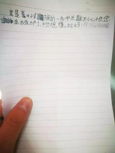 剮蹭車,小學(xué)生留聯(lián)系方式致歉