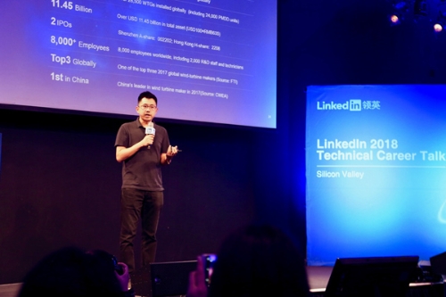 金風(fēng)科技代表在領(lǐng)英海外人才招聘活動(dòng)上進(jìn)行宣講。人民網(wǎng) 張潔嫻 攝