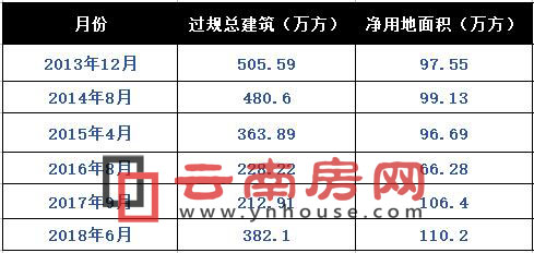 2013-2018年6月過規(guī)總建面歷史最高月份統(tǒng)計(jì)