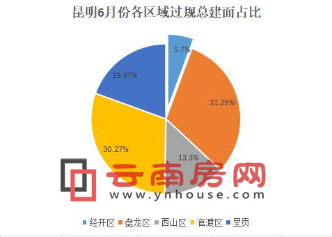 從區(qū)域來看,該月過規(guī)的項(xiàng)目主要分布于官渡區(qū)、盤龍區(qū)、西山區(qū)、經(jīng)開區(qū)及呈貢區(qū)域,而五華區(qū)則沒有項(xiàng)目過規(guī)。其中,盤龍區(qū)過規(guī)119.6萬方,占比31%,屬于過規(guī)總建面最大的區(qū)域,有恒隆廣場(chǎng)、融城昆明湖等5項(xiàng)目過規(guī);官渡區(qū)有俊發(fā)觀云海、中交尚城、中國鐵建逸都小區(qū)等4項(xiàng)目過規(guī),總建面115.6萬方;呈貢有綠地滇池國際健康城、呈貢萬達(dá)廣場(chǎng)等3項(xiàng)目過規(guī),總建面74.39萬方;西山區(qū)有萬達(dá)城、滇池名門等3項(xiàng)目過規(guī),總建面50.83萬方;經(jīng)開區(qū)有東旭御山湖項(xiàng)目過規(guī),總建面21.63萬方。