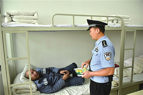 八監(jiān)區(qū)副監(jiān)區(qū)長楊宏喜,一名與老弱病殘服刑人員打交道的80后警察,從八監(jiān)區(qū)成立至今,9年間堅守老弱病殘服刑人員管理一線,每天與這群特殊的服刑病犯零距離打交道,用自己的真誠、真心管理教育這群特殊病犯積極改造、重塑新生,搭起與服刑人員心靈溝通的橋梁,不歧視、不放棄任何一名老弱病殘服刑人員,出色化解一個又一個矛盾問題,排除一個又一個安全隱患。73歲的服刑人員李某說:“沒有監(jiān)區(qū)警官們的悉心照顧、耐心開導(dǎo),我這么大的年紀(jì),一身的病,真沒有信心改造下去。”截至目前,昆明監(jiān)獄累計幫扶救助特困服刑人員500人次及其未成年子女700余人次。(春城晚報 記者夏體雷)