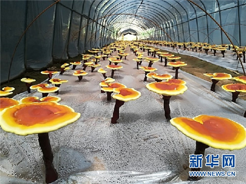光伏大棚內(nèi)種植的靈芝。