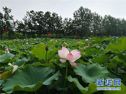 農(nóng)業(yè)體驗園內(nèi),荷花盛開。