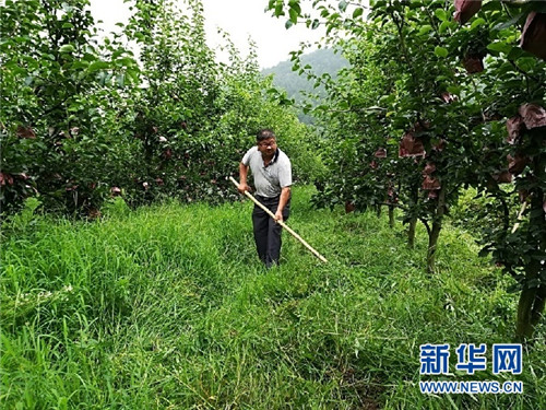 種植大戶袁緒清在果園除草。