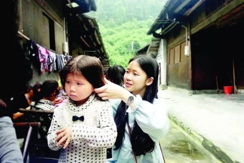 殷沙漫幫貧困山區(qū)的孩子梳理頭發(fā)