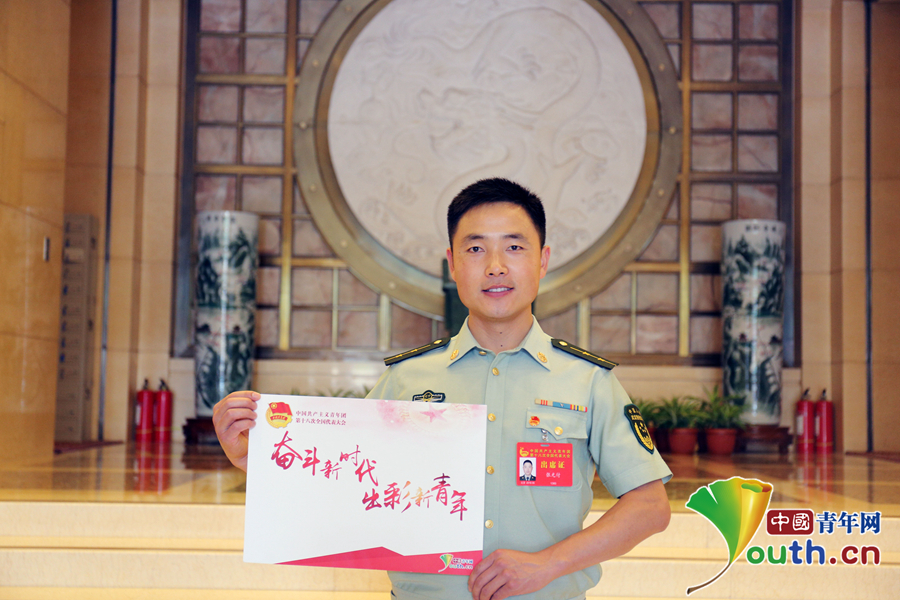 武警遼寧省總隊(duì)撫順支隊(duì)執(zhí)勤二大隊(duì)執(zhí)勤五中隊(duì)一排排長(zhǎng)張光付點(diǎn)贊“奮斗新時(shí)代 出彩新青年”。中國(guó)青年網(wǎng)記者劉尚君/攝