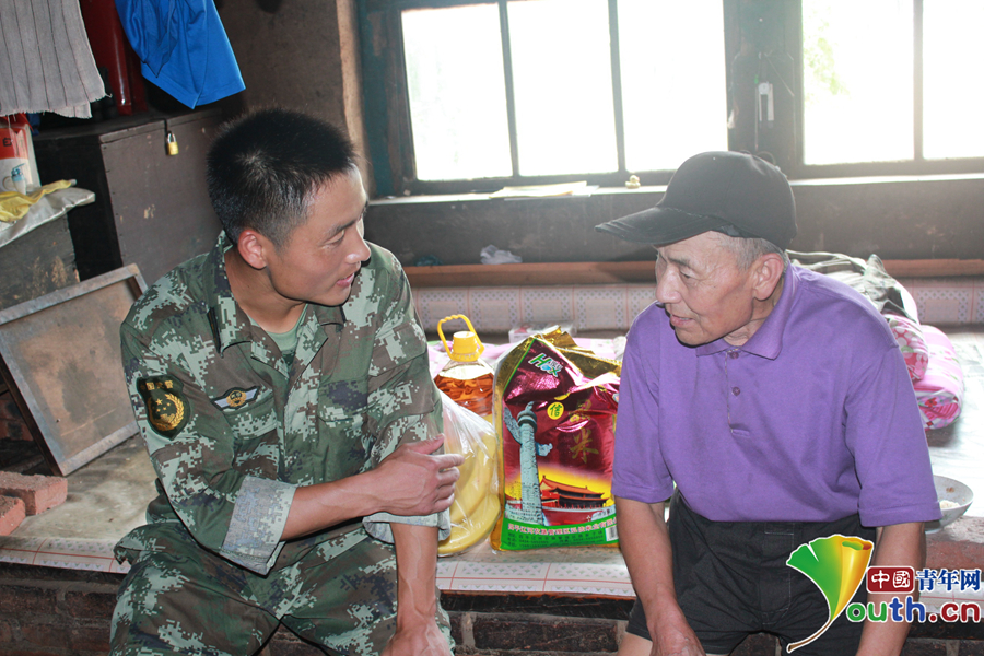 張光付(左)看望困難群眾。通訊員裴曉偉/攝