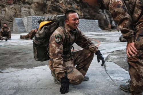 2018年1月10日,西藏自治區(qū),山南軍分區(qū)邊防某營官兵,一名戰(zhàn)士跑步訓(xùn)練歸來。