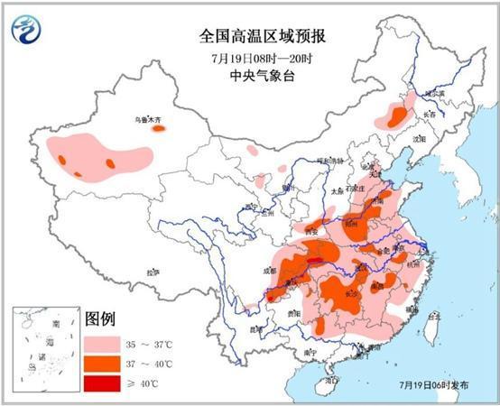 中央氣象臺(tái)7月19日06時(shí)繼續(xù)發(fā)布高溫黃色預(yù)警:預(yù)計(jì)7月19日白天,云南東北部局地可達(dá)40℃。