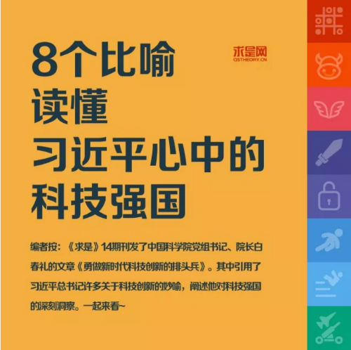 【“學習筆記”按】《求是》14期刊發(fā)了中國科學院黨組書記、院長白春禮的文章《勇做新時代科技創(chuàng)新的排頭兵》。其中引用了習近平總書記許多關于科技創(chuàng)新的妙喻,闡述他對科技強國的深刻洞察。一起來看~