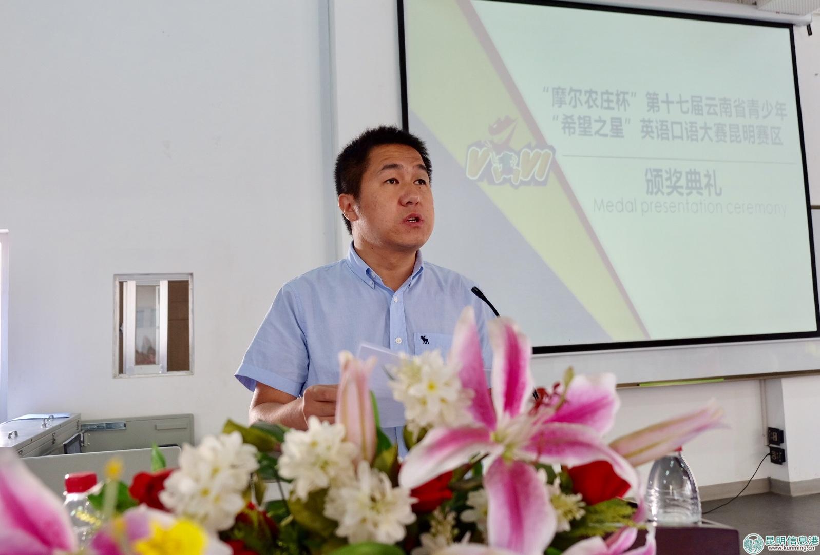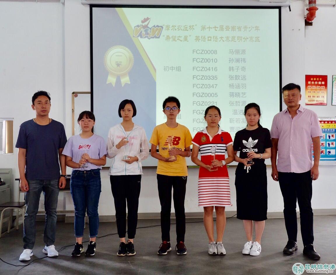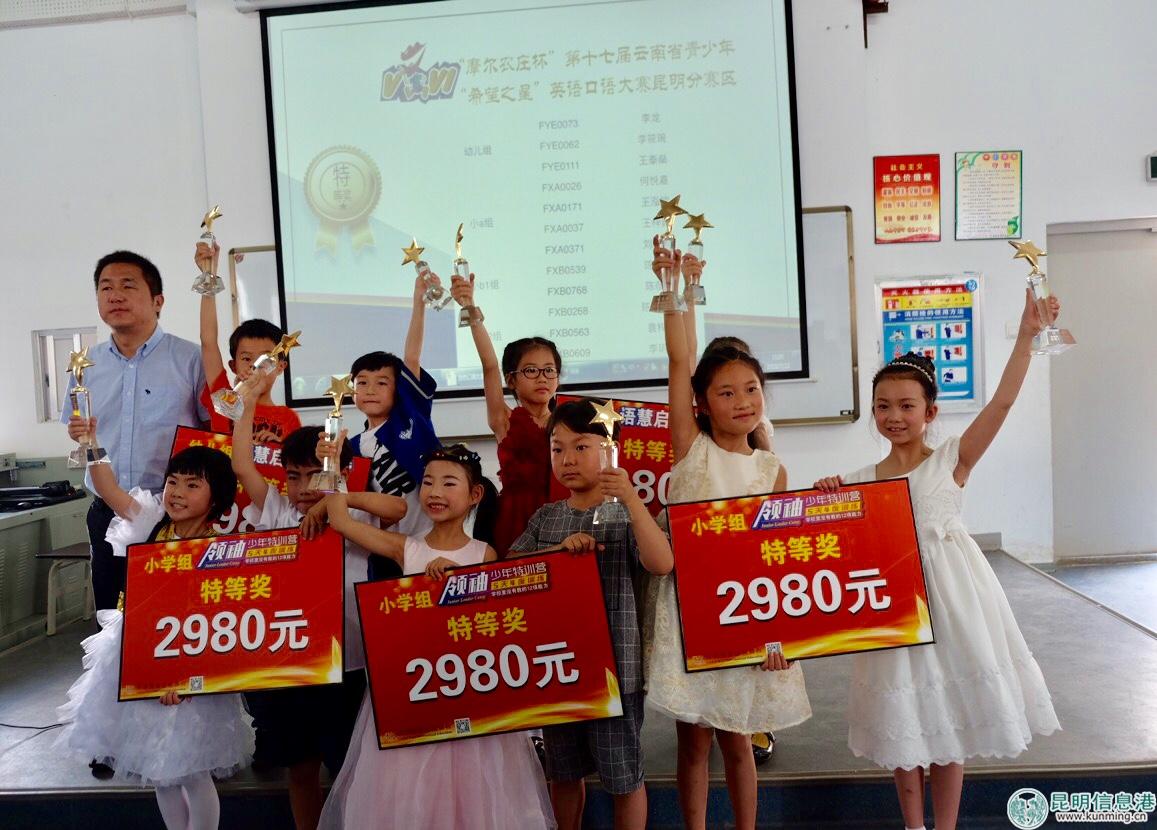 “摩爾農(nóng)莊杯”第十七屆云南省青少年“希望之星”英語口語大賽昆明分賽區(qū)選拔賽由共青團(tuán)昆明市委、昆明市文明辦、昆明市少工委主辦,昆明信息港承辦,環(huán)球博雅國際教育、新東方前途出國昆明分公司、云南智德教育信息咨詢有限公司(金色少年)、農(nóng)夫山泉股份有限公司、盤龍小學(xué)濱江校區(qū)、一起作業(yè)特別支持。